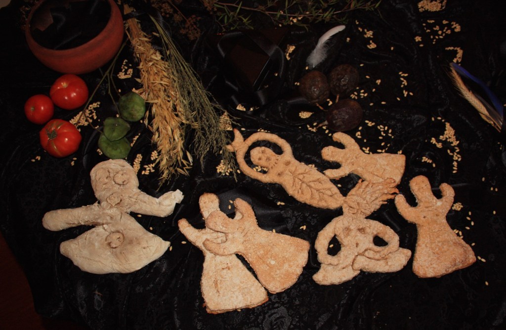 In the oldest Earth-based traditions of Europe, Lammas has been a celebration of the Old One, the Crone face of Goddess, when the Summer is passing, Sun’s light has peaked in this region of our Planet, and She becomes the reaper and the reaped: it is a funeral. I understand this Seasonal Moment as the Sacred Consuming, when the growth of the light part of the cycle is received back whence it came. In more recent times, as Goddess became displaced, it has been known as “Lughnasad”, the “wake”/funeral of the grain God Lugh: and traditionally straw figures of the god are burnt in ceremonies. Lammas (meaning the feast of the bread) may be an earlier name for this Seasonal Moment, though some are of the opinion that it is a Christian name. I disagree[i]: that is, the Primordial Mother Goddess IS the grain (corn, wheat, rice) in many global indigenous cultures, and Lammas may be celebrated with the understanding that we are each and all the grain, the food, consumed – certainly after the peaking of being, if not before. We are the Bread that is consumed. This Seasonal Moment is a marking of that feast.