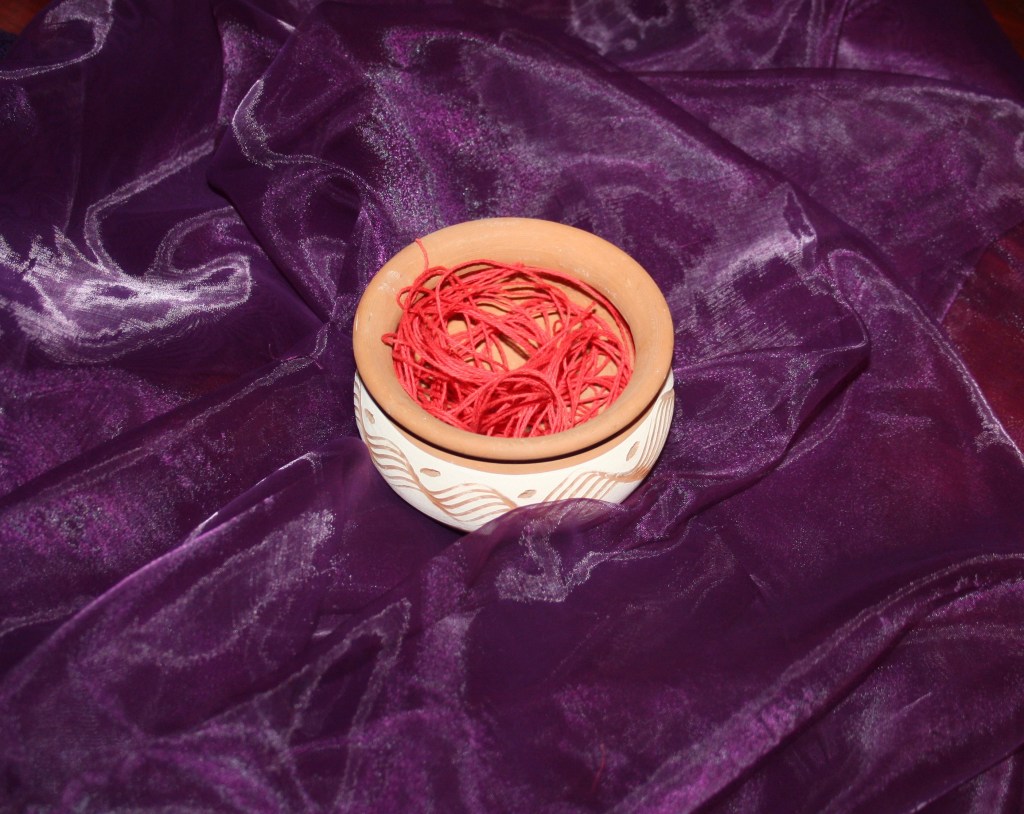 It is an ancient tradition at Autumn Equinox ceremony for participants to wear red threads, or to tie them on each other; to signify the receiving of this gift and the vision of it. It is a remembrance of the ancient initiates who wore red threads when they participated in the Eleusinian Mysteries celebrated at Autumn Equinox in ancient Greece. The red thread may signify this sacred and delicate balance of life, that continues beneath the visible – in the dark of space-time, in the dark of Earth, in the eclipse of known ways. It may also be understood to be held within the Seed – any seed; and it is not just a promise of life, it IS the life that is present; it is simply below the visible.