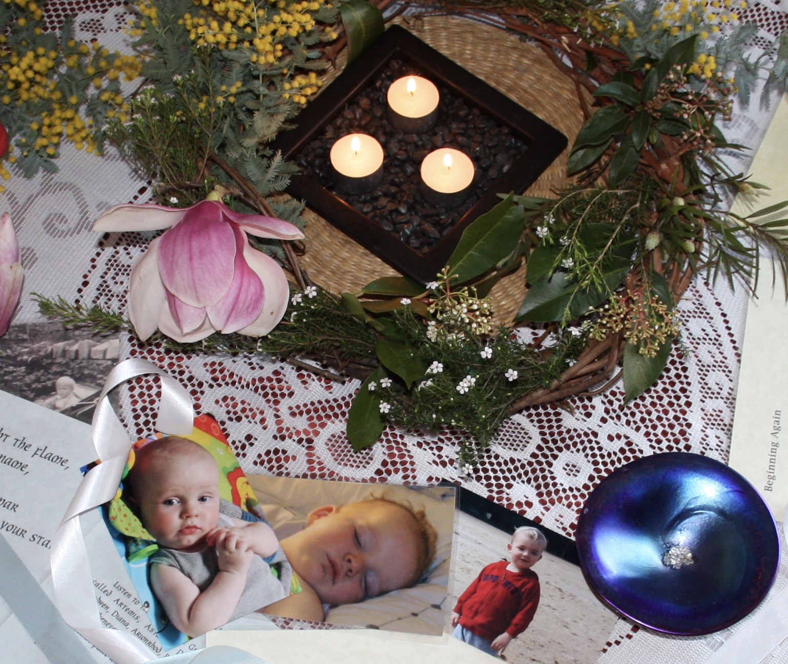 Whereas Imbolc/Early Spring (which may be felt as Late Winter depending on your region), polar opposite across the globe at the same time, may be a time of dedication to the new life emerging, including in the self: to watch for it, and attend to it. Often in a culture of self-abnegation or suppression of diversity, this can be a challenge; so it is significant to step up and celebrate the unique small self, the particular gift that each self is, as well as celebrating new life in flora and fauna. This Season of Imbolc/Early Spring lends itself to ceremonial commitment to bringing forth and nurturing what may be new and tender, or untried, and a time for celebrating the quality of differentiation. It is traditionally celebrated as a special feast of Goddess Brigid/Brigit of the Celtic peoples, who tends the flame of being: She may be understood as the Flame of Being itself, beyond anthropomorphic representations of Her.