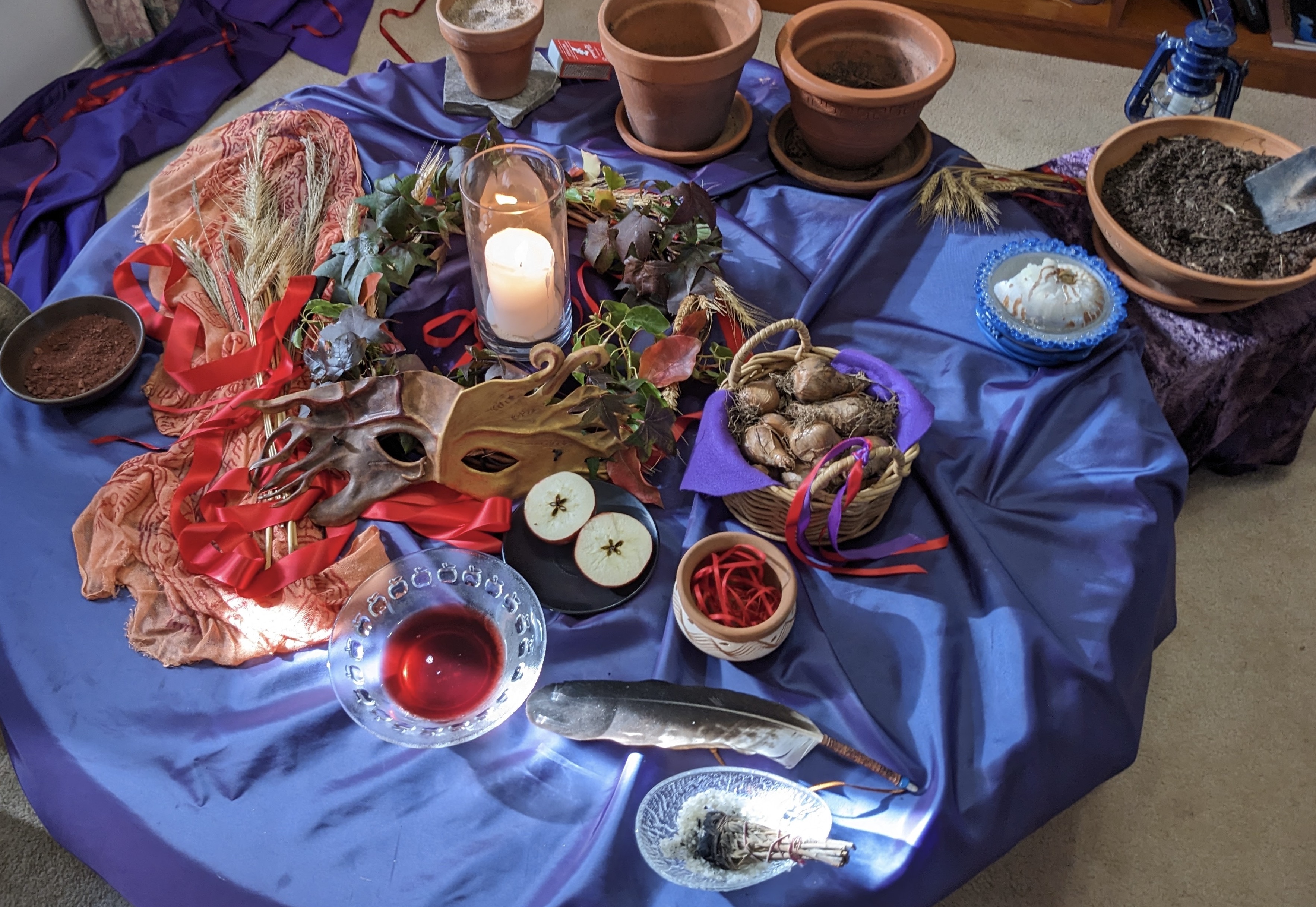 The Autumn Equinox, often known as Mabon or many other names depending on place, may be celebrated as the loss of the Beloved One, as life declines. In the story of Demeter and Persephone, Persephone descends to the underworld to tend to the dead and for the gaining of knowledge of these realms … understood as Poetry for the power of the Seed, and many other valencies of meaning. This Moment may celebrate a “stepping into the grief and power of loss” which is part of existence, and is often not understood in a culture that has become disconnected from the Earth. Sacred Moments of loss may be ceremonially recognised at this time and connected to Larger Story – that of Earth Herself and Cosmos. Note that the version of the Persephone story told in a PaGaian cosmology is one wherein Persephone descends of Her own volition (not the abduction version) – it is an interpretation of the story that enables Persephone’s integrity as a redemptive quality innate to the Cosmos and present in the Seed. This version is researched and told by Charlene Spretnak in her Lost Goddesses of Early Greece. It is also told by Carolyn McVickar Edwards in The Storyteller’s Goddess. This story is developed in this article: Female Metaphor, Science and Paganism: a Cosmic Eco-Trinity.