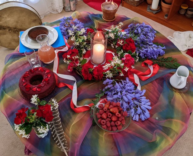 In the Southern Hemisphere the light part of the day continues to grow and to dominate, and thus the Season of Beltaine/High Spring is a time of witnessing and celebrating the beauty and relational strength of life, and also then for celebrating the essential deep desire for it. Desire is essential for anything to happen, and may be recognized as Holy Desire. This recognition, enjoyment and wonderment is so needed in these times. Beltaine/High Spring may be a time of ceremonial celebration of the power of allurement, the holy desire that brings all things forth. It is a Moment of celebration of the power of light and its processes: the warmth received, the manifestation of flowers, fruits and beauty, the diverse colour wavelengths received into eyes awakening the senses,[i] and the passion enkindled, out of which relational connections deepen; and even just whatever it is that gets you out of bed in the morning. The creative nature of passion and desire deeply felt and expressed multivalently, is worthy of much contemplation, and not repression as many have been taught in this era.