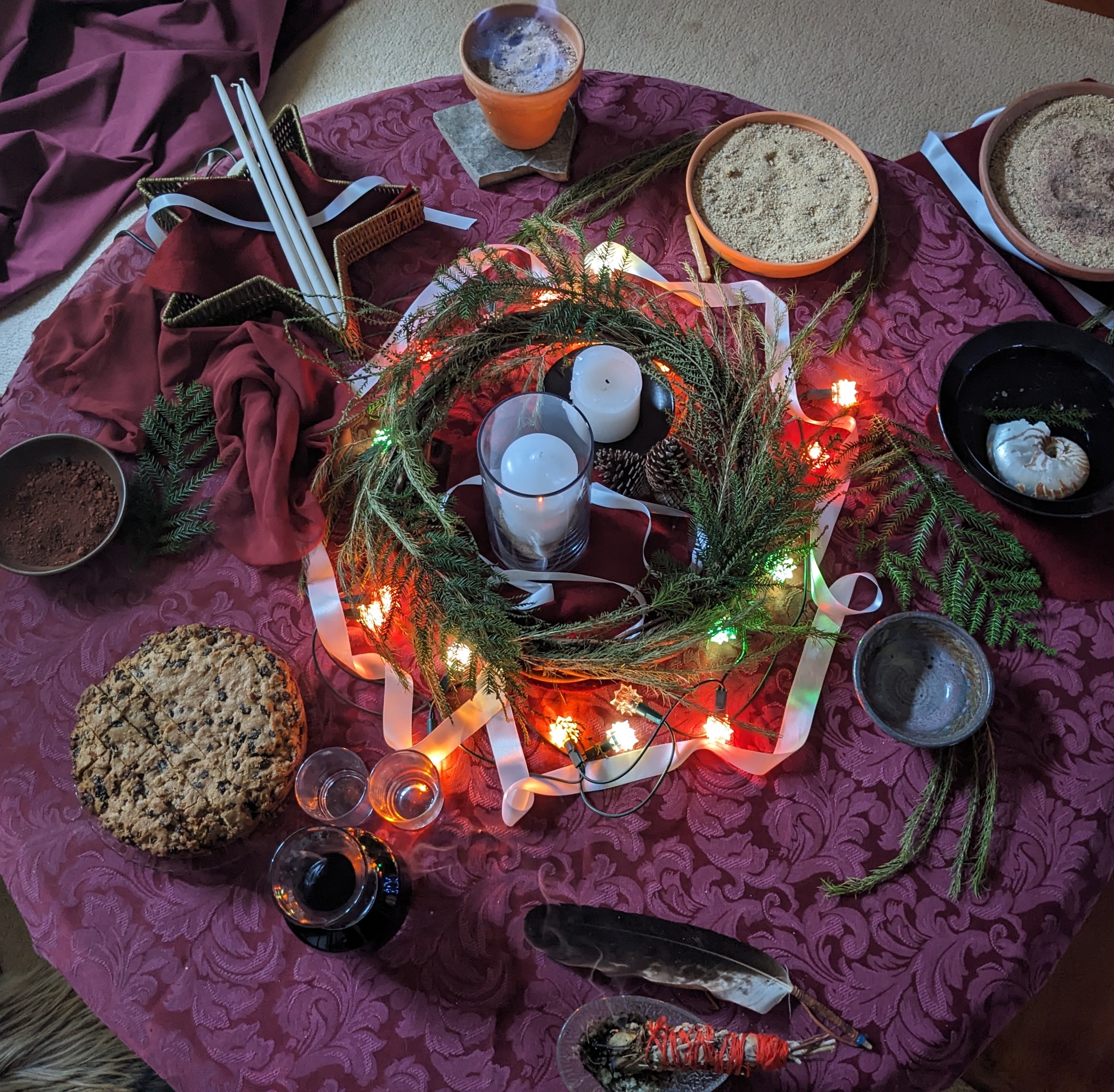 For the Northern Hemisphere December Solstice is the Winter fullness and peaking of the dark, and the magic of the turn/ return to the light part of the annual cycle, out of that fullness of darkness. The dark part of the day is at its longest, yet it turns. It is a Moment for celebrating the birth of all being, of all manifest form, and the renewed promise of ongoing Creativity: life will rise again.
